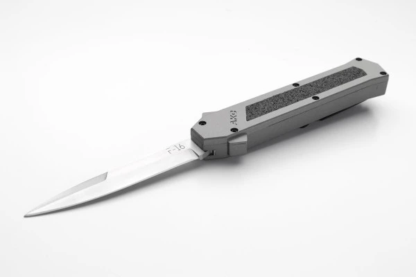 Strong and solid mechanism with it’s double springs inside for a durable and faster opening. Blade play is almost zero minimum. Press the button forward and the blade rockets out. Pull the firing button back and the blade retracts safely. The action is fast and the knife is light and ergonomic. Satin razor sharp bayonet blade, black pocket clip. Overall Length: 20cm – 8″ Blade Length: 8.5cm – 3.35″ Blade thickness: 3mm – 0.12″ Weight: 88 g – 3.10 oz. Blade Material: 440A Stainless steel Handle Material: Aluminium Inlay Material: Hand Grip Inserts