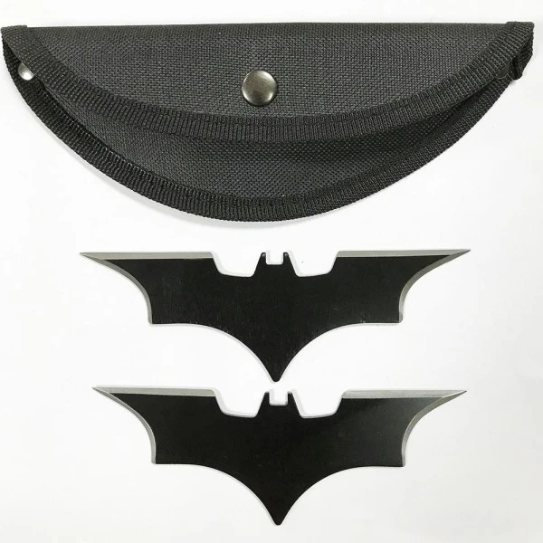 Black Bat Throwing Stars Set Black. 6″ overall length stainless steel blade 2 piece set with nylon belt sheath.