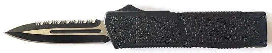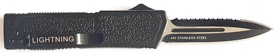 Lightning Model 2 D/A OTF Automatic Knife Dagger Half Serrated. Aerospace Grade Aircraft Aluminum Handle 440 Stainless Steel Blade Deep Carry Pocket Clip. 8 inch total length 3.25 inch blade. Strong spring dual action snap with the push of the button forward and backward